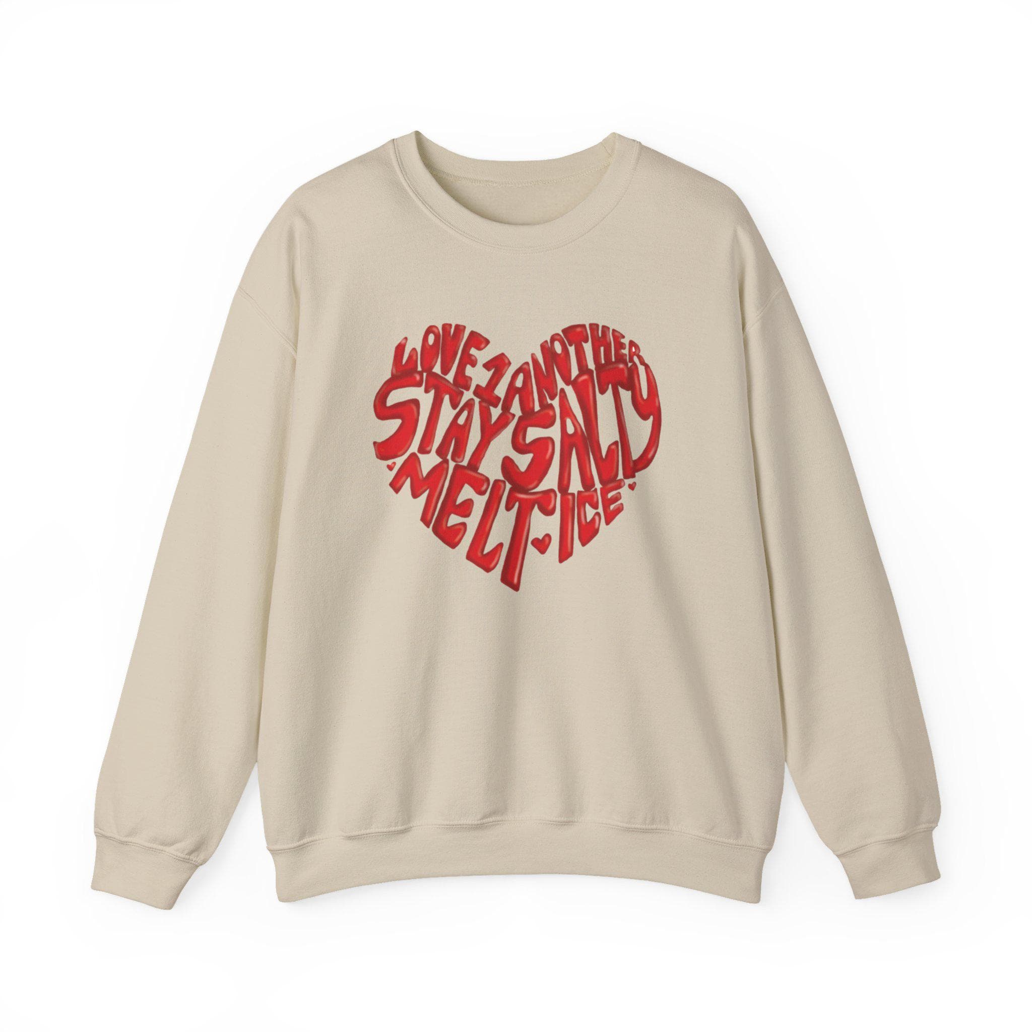 This cozy crewneck sweatshirt carries a hand-drawn, heart-shaped graphic in warm red lettering that reads like a short love note. The medium-heavy 50/50 cotton-poly blend feels substantial but soft, with a classic cut that sits comfortably for layering or lounging. Tubular knit construction and ribbed collar keep the silhouette clean, while double-needle stitching at stress points promises long wear. Small thoughtful details — like tear-away gray label, DTF-printed inner neck and wrist marks, and the option for subtle embroidered placement on the chest or wrists — make it feel curated, not mass-produced. Ethically sourced U.S. cotton and OEKO-TEX certified dyes add quiet reassurance about materials and safety.